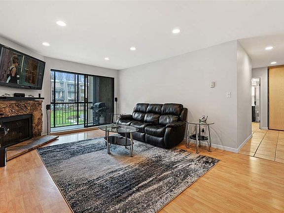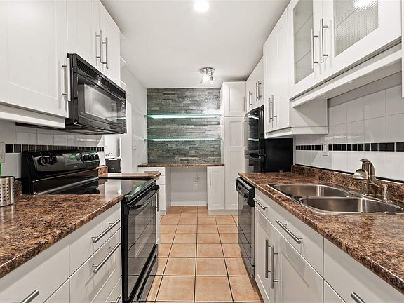 This 2 bed, 1 bath home has it all!! This large 990 sq/ft home has an updated kitchen, new cabinetry, LED lighting. Bathroom has been fully renovated with a double sink vanity, large stand up shower, new tiles and lighting. Living room has gas fireplace, huge dining space and opens up to an enclosed patio/flex space. New laminate floor, a built-in workspace in the kitchen, insuite laundry, loads of in-suite storage and 2 huge bedrooms with closet organizers. Storage locker and underground parking complete this beautiful home. Worry free building with proactive strata. Amenities include an indoor pool, sauna, gym, games room/lounge/workshop. Pet friendly building, rentals with restrictions. Heat/hot water/gas/included in maintenance. Short walk to skytrain, mall and easy Hwy 1 access.