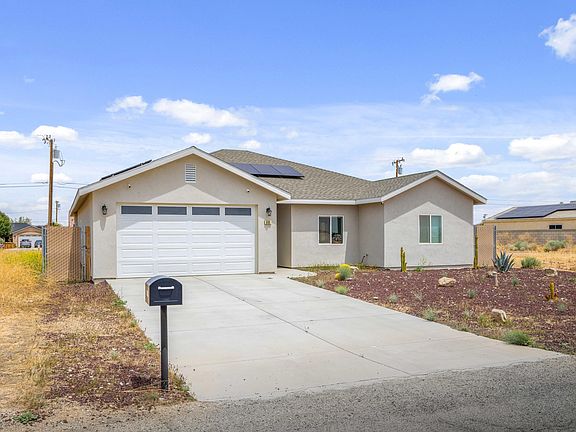 Built in 2022, this stunning home offers open concept, stylish living at its finest. The large kitchen has ample storage, a large island, walk-in pantry, quartz countertops with fabulous lighting over the island and dining area. Beautiful laminate flooring spreads throughout the house creating a seamless feel and enhancing the 2000+ square foot layout. The Master Bedroom is grand with a walk-in closet, double-sink en suite bathroom, stand-up shower and private water closet. The three secondary bedrooms are sizable as well. Laundry room is very accessibly located near the bedrooms for convenience. All windows throughout are covered with beautiful blinds, with the Living Room and Slider blinds functioning electronically. The spacious 2-car garage is equipped with TWO 7Kwh 8-gauge wire 32 amp charging stations for your EVs. The solar system is owned and generates enough electricity to run the whole house, including charging 2 cars, and still accumulate a credit. No need to combat hard water stains and dry skin. Installed is a fully owned whole house water softening system. Good for your fixtures and easier on your skin and hair. The property is fully fenced offering privacy and a blank slate to create your own backyard oasis. This home is ready for its next owner - move-in ready and no seller contingencies!
