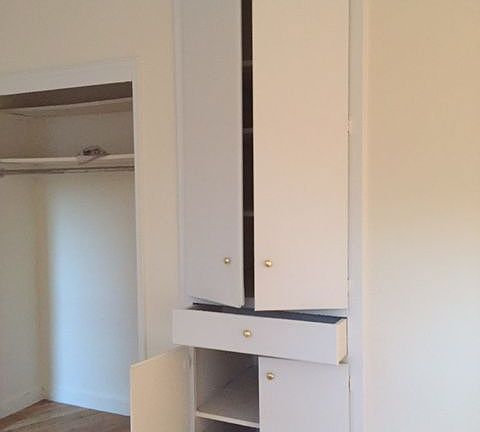 Enormous studio with alcove sleeping area and separate kitchen. Kitchen is modern with pantry and dishwasher. Bathroom is renovated with new vanity and sliding doors on the bathtub.This apartment boasts many closets and built-in drawers and cabinets. The building is pristine, has a 24 hour doorman, live-in super and laundry room on the first floor. Steps to express bus to Manhattan and the beauty of Shore Road Park! No Fee!