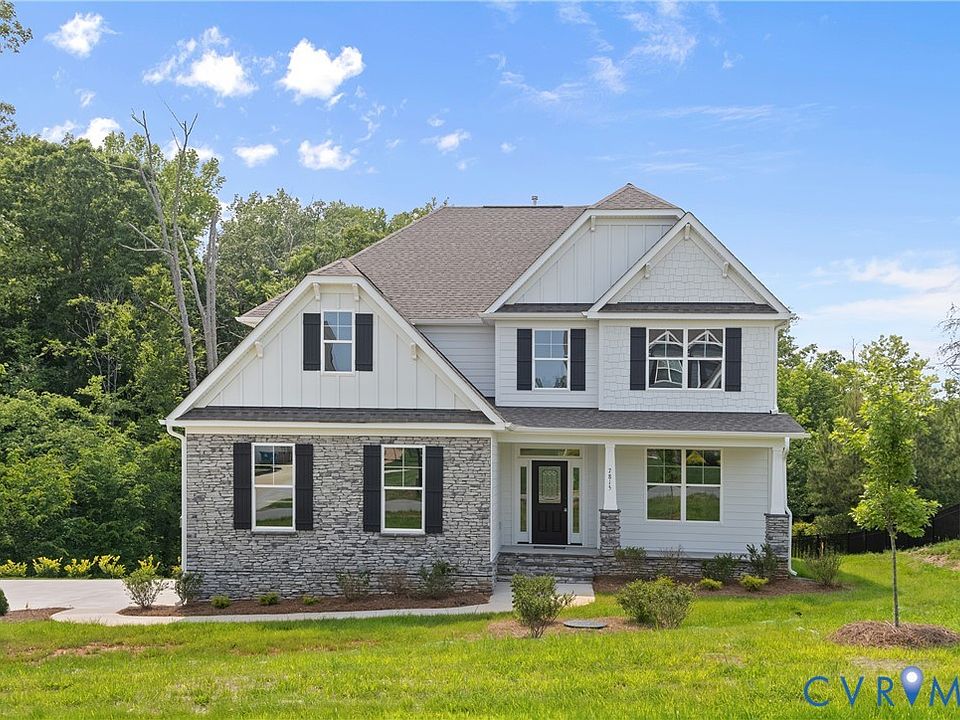 Nestled on a quiet cul-de-sac with a private home site backing to woods, this 4-bedroom, 3.5 full-bath home in the award-winning Harpers Mill community is filled with options! An office with French doors greets you as you enter the home. The kitchen features an island and a walk-in pantry. The adjoining breakfast area has a customized decorative window package. A spacious two-story family room. Retreat to your private sanctuary; a FIRST-FLOOR PRIMARY SUITE offers a walk-in closet, an en suite bath with double vanity, and a tray ceiling. A powder room for guests and a screened rear porch complete the first floor. Upstairs, an oversized loft makes a great secondary entertainment area. Bedrooms 2 and 3, each with walk-in closets, share a Jack-and-Jill bath with dual vanities. Bedroom 4 has a walk-in closet and a private bath. A finished storage area completes the second floor. Enjoy all the amenities Harpers Mill offers, including an Olympic-size swimming pool, splash park, soccer complex, and walking trails!