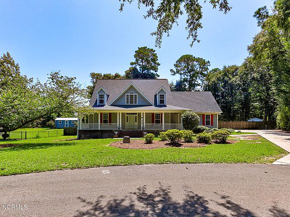 Seller offering $20,000 buyer incentive to use as they choose!! Here is your chance to live in Scotts Hill and still be in beautiful New Hanover County! Enjoy the best of both worlds with this Cape Cod-style gem, nestled on a large cul-de-sac lot with no HOA. Some of the home features are as follows: As you enter, you'll be greeted by beautiful hardwood flooring that extends from the foyer to the formal dining room. The kitchen boasts Corian countertops, a central island, and white cabinetry, perfect for cooking and entertaining. The breakfast nook has a bay window, bringing natural light into the space. The first-floor primary suite includes a double vanity, whirlpool tub, separate shower, tile flooring, and a spacious walk-in closet. The great room features a high ceiling and a cozy fireplace, creating a warm and inviting space for relaxation. On the second floor you'll find three additional bedrooms and a full bath. There is also a bonus room located over the garage that has new carpet and this versatile space can be used as a bedroom or an office. Enjoy the rear deck with trex decking, covered front rocking chair porch, and RV parking with electric service and waste cleanout. Don't miss out on this fantastic opportunity to own a home with so many desirable features!