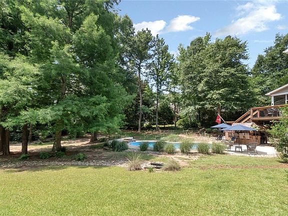 This beautifully updated 6 bedroom, 4.5 bath home boasts a FORTIFIED ROOF (2023), SALTWATER POOL, and a charming lower-level GUEST APARTMENT with a dedicated exterior entrance. The guest apartment is great for weekend guests, multi-generational living, or RENTAL POTENTIAL. Set on a 1.27 ACRE cul-de-sac lot in Timbercreek Subdivision, the property welcomes you with a charming front porch and great curb appeal. Inside, the home features a home office with French doors and formal dining room just off the foyer. Connected to the office and foyer is a half bath for guests. The dream kitchen includes custom cabinetry, stainless steel appliances, double ovens, gas cooktop, quartz countertops, expansive island, custom backsplash, and dining area with double doors to the outside deck. The kitchen flows seamlessly into a spacious family room, complete with gas fireplace and French doors leading to a screened porch. Located on the main level, the primary suite features tray ceilings, large windows for natural light, and a spa-like bath with double vanities, whirlpool tub, separate shower, and an oversized walk-in closet with custom storage and a built-in ironing board. Also on the main level is a laundry room equipped with an abundance of cabinetry, sink, hanging rod, and counter space. For added convenience, there’s a laundry chute from upstairs. On the second level, a wide central hallway creates a practical shared area with built-in desks, bookshelves, and cabinetry. 4 generously sized bedrooms share 2 full baths, (one is Jack and Jill style), and a bonus room offering additional flex space. The lower-level private guest apartment includes its own entrance, kitchen, living area, bedroom, and full bath. Also on the lower level is a heated and cooled workout room and a spacious workshop. The lower level has access to the pool, tiki bar, patio, deck spaces, and backyard. The professionally landscaped backyard features an in-ground saltwater pool that has a solar cover that conveys. Additional highlights are a 3 CAR GARAGE, recently replaced POOL MOTOR, TANKLESS WATER HEATER (2024), LED RETROFIT CAN LIGHTING, heavy molding and trim, high ceilings, fresh interior paint throughout, plywood for windows, security system, security lights, irrigation system, and a transferable termite bond with Arrow. Timbercreek is a premier golf course community with access to a community center with a pool, fitness center and recreation area with a second pool, tennis courts, playground, basketball courts and more. Timbercreek is conveniently located near I-10 and directly across from the Eastern Shore Center offering retail shopping, restaurants, Publix, and more. This is a spectacular and “must see” property! Buyer is responsible for verifying all measurements and relevant details.