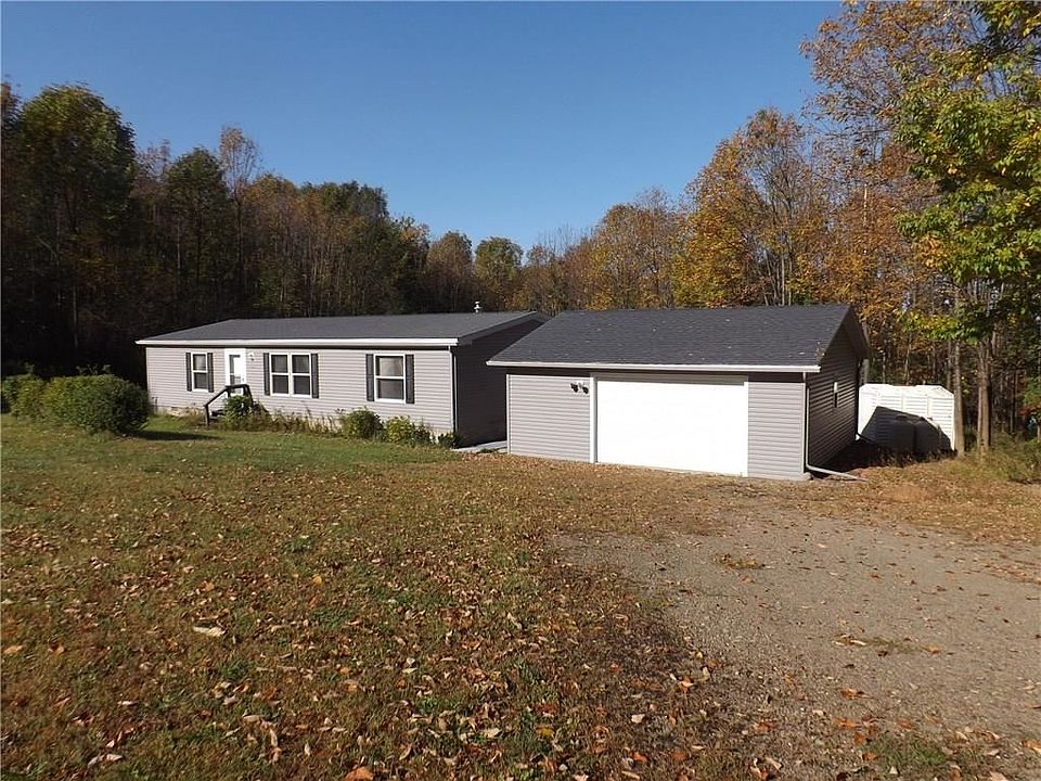 MOTIVATED SELLER! Immaculate 3 Bedroom, 2 Full Bath, 2008 Doublewide, Central Air and Heat, with a large detached garage situated on 4.99 acres! Nice private wooded setting includes a 10 x 8 vinyl storage shed with skylights. Home also features a nice screened in back deck and the garage is double size, with one large automatic garage door. Water from 2008, 90ft drilled well is excellent. Home had a lot of upgrades added. When you go into the back porch/mud room you go into laundry room with a commercial size stackable washer and dryer. The closets in all three bedroom are very large and bedrooms are a good size. Both bathrooms are large and the Master Bath has a nice large vanity. Call today for your showing! Just surveyed recently.