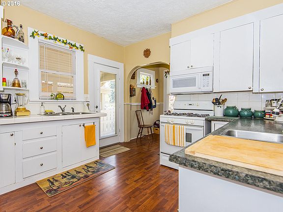 St. Johns Bungalow, master bedroom has separate entrance, orig. character including 9ft ceilings, picture rail mouldings, kitchen nook, front porch, and fir floors under laminate on main floor (except under master bedroom addition per seller)Room for 2 bedrooms and a bathroom in potential attic expansion, basement is plumbed for a full bath. 1/4 mile to St. Johns business dist., parks, and shopping. Open house 5/14 10-12 and 5/15 12-2