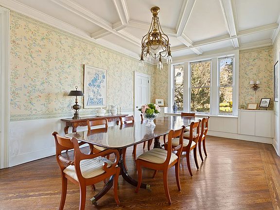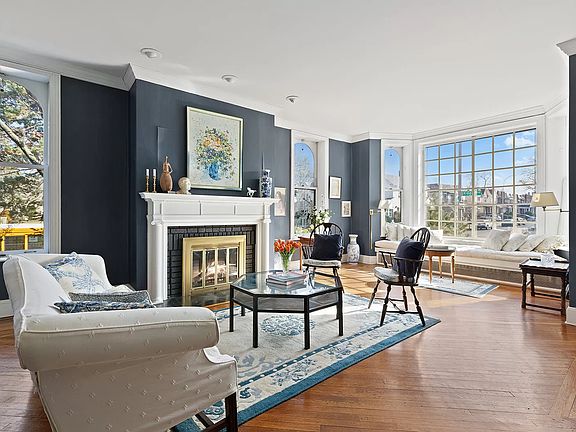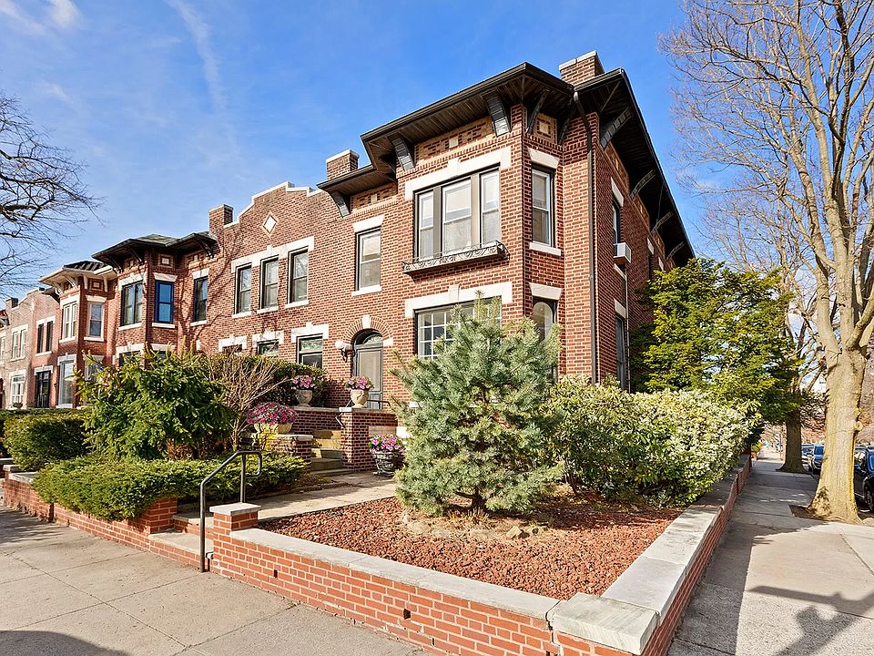 Introducing 9102 Ridge Blvd - an extraordinary 5bed/3.5 bath, pre-war brick townhouse with parking in prime Bay Ridge! This sprawling corner property offers an elegant feel throughout and features a number of period details including original hardwood floors with inlays, high ceilings, bay windows, pocket doors, moldings, stained glass, and more. The spacious, light-filled living room showcases oversized windows, soaring ceilings, a gas fireplace, and a built-in window seat perfect for relaxing after a long day. French pocket doors off the living room lead to a formal dining room with coffered ceilings and custom built-ins. This spacious dining room can easily accommodate seating for twelve or more. The sun-filled, eat-in-kitchen features windows with Southern, Western and Northern exposures, built-in seating, and a powder room for convenience. A glass doorway off the kitchen exits to a wooden deck with a seating area and stairs descending to a backyard patio that's perfect for entertaining. A stunning staircase with original banisters leads to the upper level, which has four bedrooms and plenty of natural light from the numerous windows and two skylights. The primary bedroom spans the entire width of the home and features two walls of windows and an ensuite bathroom. This level has two additional bedrooms, a spacious office/bedroom, multiple walk-in closets, and a second full bathroom with dual sinks. Both bathrooms on this level have original stained-glass windows. The walk-out lower level serves as a recreation room and home office and features abundant closets and storage space, a bathroom, and houses the mechanicals and laundry. Two exits lead to the side of the house, and to the backyard and private garage. Ideally located on a tree-lined street close to the subway, express bus into Manhattan, shops and restaurants on Third Avenue, and the Shore Road Promenade and waterfront parks - this home is a special find. Call listing agent to schedule your showing today!