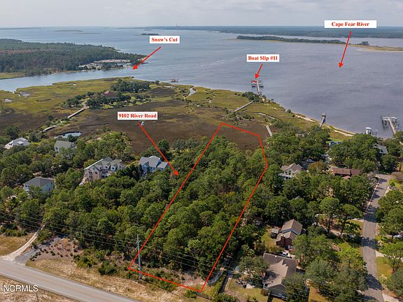 Fantastic opportunity to build your waterfront dream home on an impressive 3.29 acres in coastal North Carolina! Located on one of the largest lots in the Saponas Pointe neighborhood, this large property includes a 30' boat slip in the community marina on the Cape Fear River. Situated nicely on Snow's Cut across from Carolina Beach State Park, you will have gorgeous unobstructed views of the water, coastal wildlife, and those beautiful Carolina sunsets. The Saponas Pointe community offers a natural setting, with beautiful views and a peaceful place to be outside and enjoy nature. Hop on your boat for a sunset cruise along the Intracoastal Waterway or soak up the sun as you journey towards downtown Wilmington. This prime waterfront location is only minutes from Carolina Beach and historic downtown. Your building possibilities are endless with a lot this size. Call today to make this beautiful property your serene oasis!