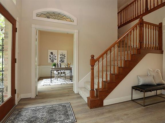 This Champion Forest home on a cul-de-sac street draws you in with its pretty curb appeal. The fresh interiors have been updated with stylish finishes that compliment the pretty architectural features. Nine foot ceilings in the family room and kitchen and 12 foot ceilings in the home office and formal dining room add a sense of spaciousness to this light and bright home. You will love the handsome built-ins throughout the house, the crown molding and trim, and the transoms above doors and windows. All of these custom touches tell you that this is a special home. Floor to ceiling windows flank the fireplace that anchors the large family room. The island kitchen boasts recessed task lighting and star-of-the-show pendant lights. The first floor master suite has French doors that open to the flagstone terrace, and the ensuite bath features a stunning walk-in shower, quartz countertops and loads of built-ins. Upstairs are three bedrooms and two full baths. Don\'t miss this one!