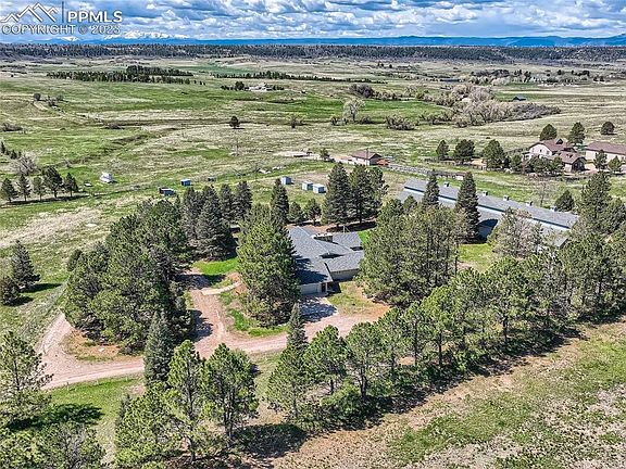 Back on the Market - $100,000 Price Reduction! Stunning Equestrian Property on 10 Acres in Franktown! This amazing property is close to town & a "must-see" for all horse-lovers. Once an Arabian Show Horse Barn, this BEAUTIFUL 23 stall stable boasts stunning mahogany wood throughout, an office, tack room, bathroom w/shower, a washing station, electricity & running water in every stall. The 2nd level of the barn can hold up to 3 semi-trucks full of hay. Anyone interested in owning a horse boarding business must see this unique Equestrian Property! The main home is a 5 bedroom/5 bathroom, 4,867 sq ft Ranch-Style home with a full walkout basement. Entertain guests in an impressive southern facing great room with vaulted ceilings, beautiful wood beams, a stone fireplace & floor to ceiling windows. Walk out onto a large deck to unobstructed views of Pikes Peak, Devil's Head and Castlewood Canyon! This home has so many wonderful features including a sun room with a wood burning stove, beautiful built-ins, oversized bedrooms, a dry sauna, cedar walk-in closet, an electrical awning, a built-in grilling area and a private patio off the primary suite. This wonderful home is waiting for the perfect owner to come in and give it some TLC to make it their dream home! There is a caretaker's house just west of the barn that is a mobile home on a permanent concrete foundation. The caretaker's house has 2 bedrooms/2 bathrooms, it's own laundry & an updated, large kitchen. Adjacent to the caretaker's home is a detached workshop (can also be utilized as a 3-car garage), perfect for storing large equipment, cars, workshop, etc. There is an additional covered carport for RV parking. The property allows for horses, cows, pigs, chicken, goats, peacocks, and sheep. Downtown Parker 16 minutes away, and Castle Rock 14 minutes away. Easy commute to Denver and Colorado Springs. This property has been Virtually Staged.