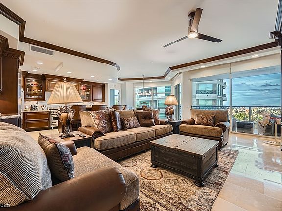 Experience luxury at One Queensridge Place. Your elavator will take you to your flooor with private vestibule. This Exquisite condo offers panoramic city views and mountain views high-end finishes, and a spacious open layout. Features include a gourmet kitchen with Viking appliances, custom cabinetry, and granite countertops. The luxurious master suite boasts a spa-like bathroom with a spa tub, dual vanities, and marble finishes. Enjoy a private terrace, perfect for entertaining. Amenities include a state-of-the-art fitness center, 13,000 sq ft spa/gym-indoor and outdoor pools, a spa, and 24-hour security. Located minutes from the Las Vegas Strip in the Heart of Summerlin, Gourmet Restraunts nearby and upscale shopping- it combines vibrant city life with serene living. Custom built in office and entertainment center. Just completly refurbished. Barista on staff for early mornings coffee,tea & ETC.. Live in elegance and comfort at One Queensridge Place.