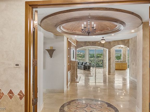 Luxurious 4-bedroom residence on the 7th floor of One Queensridge Place. This spacious home offers 4 full suite bedrooms, an executive office, and a rare 3-car garage. The gourmet chef's kitchen boasts a central island, custom cabinetry, and premium appliances. Floor-to-ceiling windows flood the main living and entertaining areas with natural light, capturing gorgeous west-facing mountain views and breathtaking sunsets. The serene primary suite faces east, offering panoramic Strip views and magical sunrises. A perfect blend of sophistication and comfort in Las Vegas' most prestigious high-rise community. Residents of One Queensridge Place enjoy unparalleled amenities incl daily complimentary coffee bar, 24-hour security, valet, indoor lap & outdoor pool & spa, Roman-style Men & Weomsn spa, state-of-the-art fitness center, theatre, wine cellar & more!