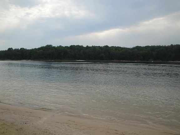 STARVATION LAKE! Approx 199 ft. frontage. Great cottage in the woods with a sugar sand beach! Spacious, large enclosed porch with lots of windows! Knotty pine interior, open floor plan, plenty room for extra sleeping! Property has a gentle slope to the water and the beach is fabulous! Includes a detached garage for boats and toys! Located very close to thousands of acres of State land, Blue Bear RV trail! What a great place to make family memories!!