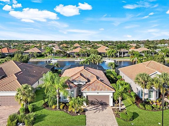 Welcome to this beautifully maintained home in The Quarry, a Golf and Beach Community (placed in the top 4% of clubs and communities globally). Start living the life you deserve in sunny Naples, FL which is reported by US News & World Report as the “Best Place to Live in 2024-2025”! This PRISTINE model home features 3 bedrooms plus a den/home office, 2 baths and is situated on a canal with access to Stone Lake. THERE IS AMPLE ROOM TO ADD YOU OWN PRIVATE BOAT DOCK TOO! Special features include new light fixtures, freshly painted inside, upgraded maple kitchen cabinets, stainless steel appliances, spacious owner's suite with custom closet cabinets, impact windows and doors plus so much more. Enjoy relaxing on the expansive travertine lanai with an oversized salt water heated pool and spa while viewing the spectacular sunsets over the lake. The Quarry has everything for that ultimate Naples vibe with over five hundred acres of lakes for boating (up to 26 feet), jet-skiing, wakeboarding, or just chilling on a paddleboard. There's a resort-style beach club with a private sandy shore. There is tennis, pickleball, bocce ball, plus a tiki bar and indoor/outdoor restaurant with poolside service-grab a cocktail without moving. Fitness center, lap pool, walking paths through preserves, and an activities director keeps things buzzing with events. It's living in a gated resort, right in your backyard. Various optional memberships (NO WAITLIST) are offered at the privately owned Quarry Golf Club. Designed by world-renowned architectural team of Dr. Michael Hurdzan and Dana Fry in 2007, this Championship golf course wraps around the water with eighteen holes of pure scenic bliss. This isn’t just a home—it’s a breathtaking retreat that elevates every moment. Seize the opportunity to claim this jewel as your own!