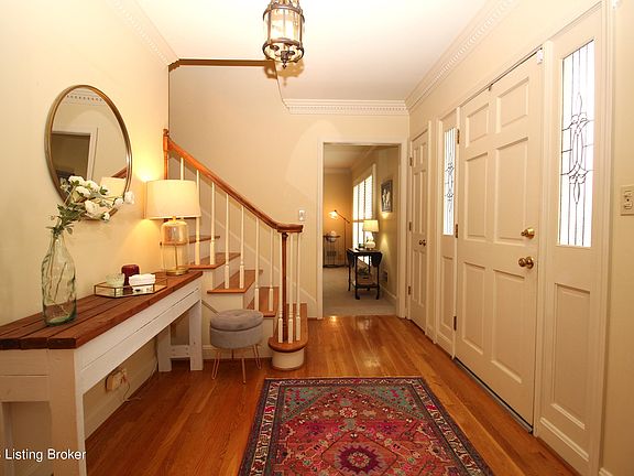 Located in the desirable Holly Springs neighborhood, this timeless two-story all brick charmer is ready for you to call home. Positioned on a large lot and conveniently located just minutes from all of the restaurants, stores and schools the Lyndon, Middletown and Anchorage areas have to offer. This home features ample living and entertaining space on the first level and in the finished water-proofed basement, a newly renovated and inviting kitchen, a spectacular primary suite, spacious bedrooms, tons of storage space, and character that makes it truly unique. The bright foyer with elegant hardwood flooring immediately welcomes you inside. To the left, the formal dining room features new carpet, wainscoting, and a set of three windows that provide beautiful natural light. To the right, there is a space that has the flexibility to be used as a formal living room, office, or both. The cozy family room features hardwood flooring, beautiful built-ins, and a wood-burning fireplace with gasoline. This home is built for entertaining with a wet bar connecting the family room and tastefully renovated kitchen. This gorgeous kitchen boasts quartz countertops, new cabinetry with soft close drawers and under cabinet lighting, new light fixtures and a stunning breakfast room equipped with more countertop/storage room and a built-in wine fridge. Floor to ceiling windows enclose it, giving a perfect view to the huge, fenced-in backyard.. The newly added load bearing back deck is the perfect place for relaxation and entertaining, and could easily be converted to a covered area if desired. On the second floor you will find the primary suite, with a massive walk-in closet equipped with built-in drawers and shelving. Three additional bedrooms with nice-sized closets, and another full bathroom are down the hall. The finished basement offers 1,000 square feet of additional versatile space. Use it as another living area, game room, play room, office or any combination of these. There is also another full bathroom, which is great for guests. New water heater and furnace replaced in 2022. Schedule your private showing of this breath-taking home!