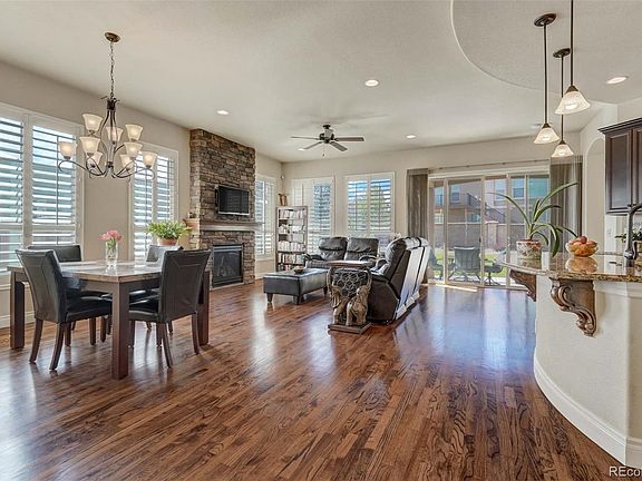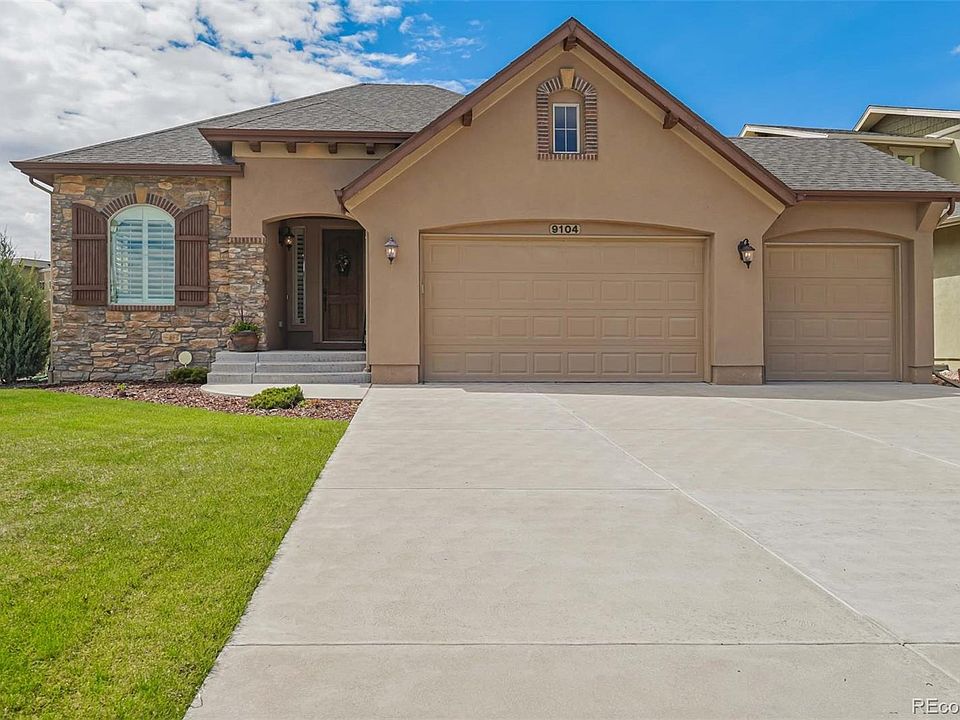 Ranch on Corner Lot in Cordera! Stucco exterior and a welcoming front porch greets you. The main floor has an open floor plan with hardwood floors and plantation shutters. The kitchen has stainless steel appliances, granite countertops, a pantry, and ample counter/cabinet space. The master bedroom has access to the covered patio, a 5pc bathroom & walk in closet. There is also another bedroom/office on the main level, a full bath & laundry room. The basement is spacious with a large rec-room, wet-bar, 3 bedrooms... 1 bedroom has an en-suite 3/4 bath & there is another full bath in the hall. So much storage... a humidifier, central a/c, upgraded window well covers, and more! Located close to military installations, shopping, entertainment & every amenity you can imagine! The Cordera community has a club house, parks, walking trails, fitness center, a pool and much more. Plus Academy District 20 schools! Come take a look at this one... we think you'll love it! Be sure to take the 3D tour too!