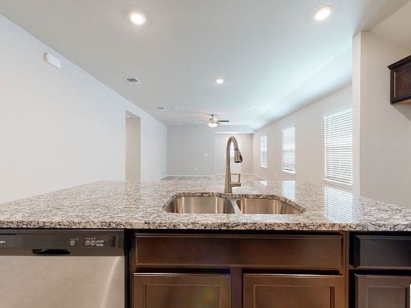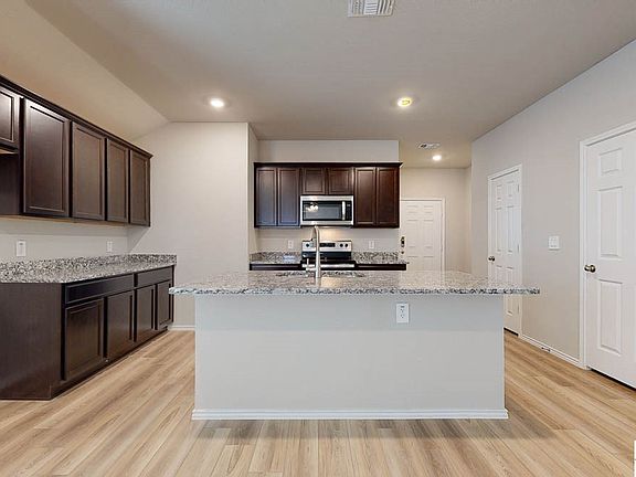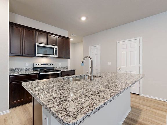 The Seabrook is a single-story, 4-bedroom, 2-bathroom home that features approximately 1,873 square feet of living space. The bright and welcoming foyer flows into the open concept kitchen and dining area. The kitchen includes a breakfast bar and perfect sized pantry. The main bedroom, bedroom 1, features a sloped ceiling and attractive bathroom with dual vanities and spacious walk-in closet. The standard covered patio is located off the breakfast area. Additional finishes include granite countertops and stainless-steel appliances. You’ll enjoy added security in your new D.R. Horton home with our Home is Connected features. Using one central hub that talks to all the devices in your home, you can control the lights, thermostat and locks, all from your cellular device. With D.R. Horton's simple buying process and ten-year limited warranty, there's no reason to wait!