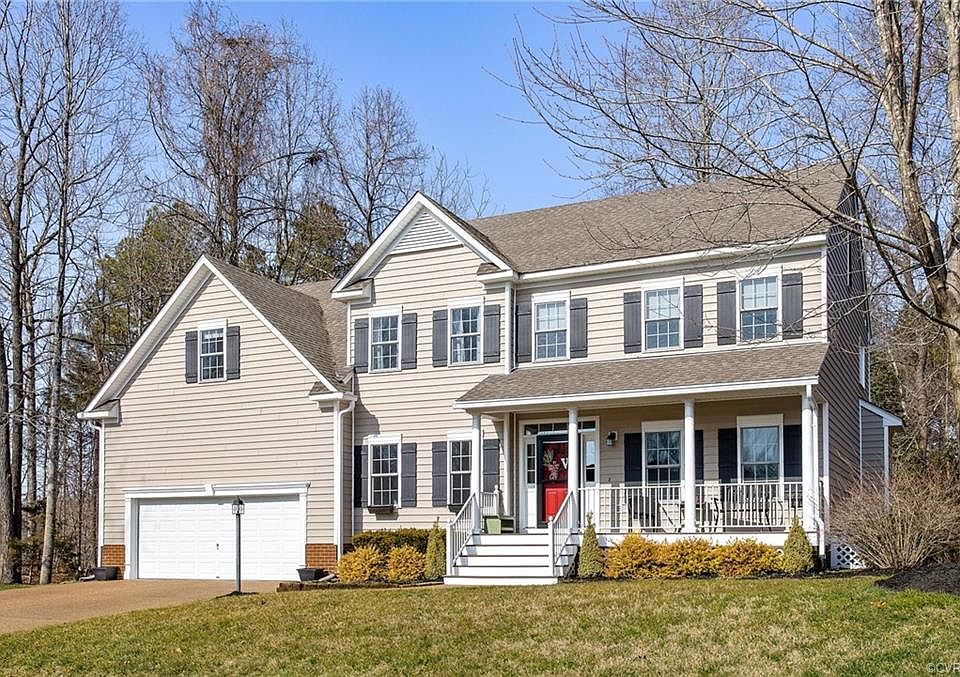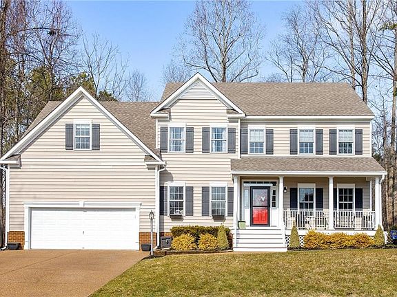Stunning home, combined with a convenient location! The house is located in a cul-de-sac and backs up to Totopotomoy Creek Park; gorgeous hardwood forest views. The home features freshly painted rooms, cherry hardwood random width plank floors on the first floor, 8 inch wide wood flooring on the second floor and luxury vinyl wide plank flooring in the finished/walk-out basement; with patio. The kitchen features less than 1 year old stainless appliances, gorgeous granite countertop with a raised bar, a large breakfast nook with bay window and a walk-in pantry with storage cabinets. A large great room adjoins the kitchen with a private view of the backyard and huge 39' x 11' composite deck. The primary bedroom features two walk in closets, primary bath suite, while two of the other bedrooms have walk in closets. A walk up attic leads to great storage and a plumbing rough in. The finished basement has a rec/room, full bath and an office/craft room. The home exterior also features irrigation system, low voltage lighting, gutter guards and aggregate driveway/sidewalk. Tankless hot water tank, HVAC system for 1st level and basement replaced this year. HOA: Walking trails, Tennis, Pool