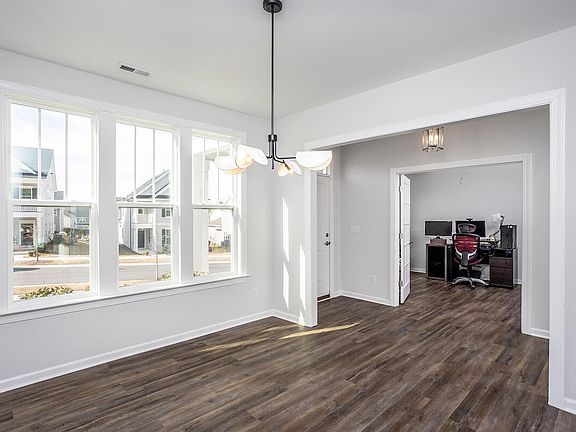 Welcome to 9104 Lee Brown Ridge, an exquisite 4 bedroom, 2.5 bath, 2 Car garage single Family home situated in a serene cul-de-sac setting. Immerse yourself in comfort and luxury with a home designed for both relaxation and entertainment. This Charleston inspired design with its dual front balconies are ideal for enjoying those beautiful Carolina sunsets or a morning cup of coffee but speaking being productive, an office with dual French doors is a perfect space for that home office, study, or crafts room you've been looking to use. A sun filled formal dining room connected to a butlers pantry flank the foyer and connect an even more impressive kitchen. Hosting a nice food filled evening will come with ease on dual built in ovens, a 5-burner gas cook top, center island with breakfast bar and gleaming granite countertops. The family room has dedicated built in home for your furry family member/s. Hardwood steps and open railing finishes off the first floor ensuring the flow matches its large feel and give it yet another touch of elegance. The primary suite has access to a private balcony and the spot that you will decide ''this home is it''. The primary bath includes a separate tub and shower, tiled floors and dual sinks and an expansive primary closet with an abundance of natural light. The second floor is complete with an open loft space, two additional secondary bedrooms, spacious hall bathroom and laundry room. For those looking for a larger space to enjoy, the third-floor space can provide many opportunities as an additional bedroom, media or flex room. Enjoy low maintenance and carefree living with included lawn care, community pool with an area for hammocks, covered recreation spaces, cornhole, and tot-lot.
