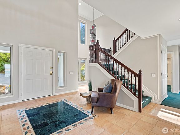 This high-bank waterfront home in Semiahmoo's Drayton Cove offers sweeping views of the harbor, Mt. Baker, and the cityscapes of Blaine and White Rock, BC. Nestled on nearly 1 acre, the property holds endless potential for custom landscaping or outdoor living. This custom, quality-built home includes a rare RV garage w/ utility hookups. Spacious kitchen w/ cherry cabinets, skylights, tile floors, & custom copper hood over the island. While main floor living is an option, the upstairs primary suite maximizes the stunning views & offers a large en-suite bath & walk-in closet. The stately third bedroom features custom shelving & a "secret" door to the attached bath. Large laundry w/ attached hobby room/office. A solid-built home & a must see!