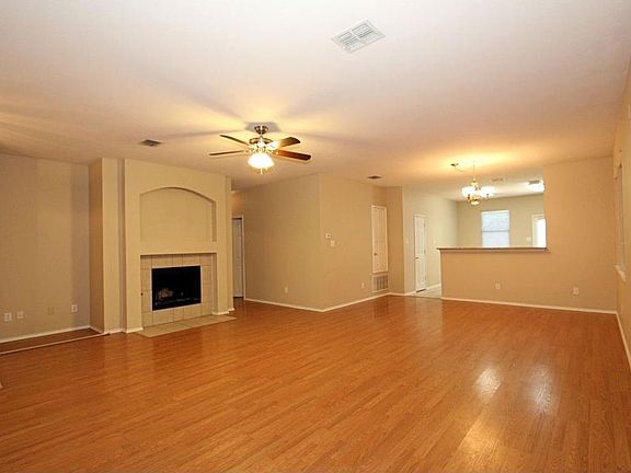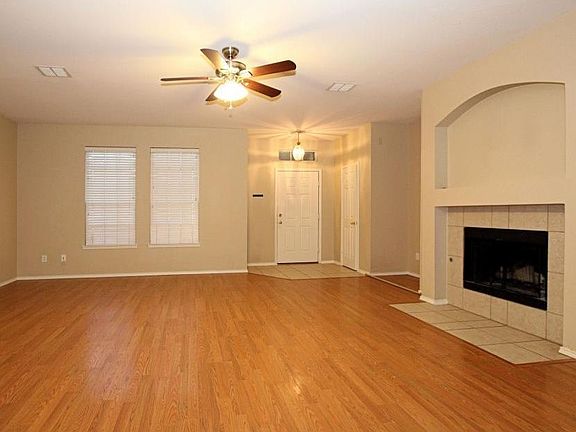 Delightful 1-story home with updated hardware & fixtures!*Open concept with fireplace & entertainment niche + chandelier in dining room*Granite counter tops line bkfst bar in eat-in kitchen with gas range & pantry*Master offers bkyd view & master bath features granite dbl vanity, garden tub & separate shower*Find nice size bedrooms*Epoxy floor in garage*Sprinkler system*Full size utility room*Community pool*