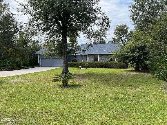 Quiet country living near town can be yours on this beautiful 3 acre setting in the Bear Creek neighborhood. This one owner, 3 bedroom/2 bath home has had a new roof in 2019, new hot water heater in 2019, and new AC in 2017 (cage new in 2019). It was built high on a solid concrete slab which allows for stress free living even though the back of the lot is in a flood zone. The cathedral ceiling in the living room gives it a spacious feel, capped off with a stone fireplace. The living room is open to the dining area and spacious kitchen with ample cupboards and a breakfast bar. All three bedrooms are spacious with large closet storage. The primary bedroom has a private bath. Take a break and relax, either on the screened in porch or on the deck overlooking this private property. An artesian well with an added filtration system provides the home with it's water. Bear Creek defines the back edge of the property. Included on the land is a small barn and a pond.
