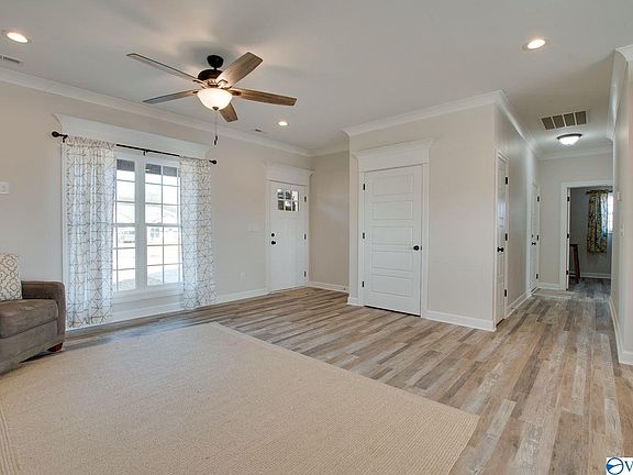 Under Construction-Under Construction brick home with farm house details, 9ft ceilings, on 1/2 acre lot near the River but minutes from HWY 72. Open floor plan, with loads of grey cabinets topped with granite & island. Marble back splash, SS appliances, LVP flooring everywhere. FR & DR with view of the back forty. Natural lighting, recessed lighting and designer lights. Isolated MBR with full bath, tile surrounds tub, double marble topped vanity & walk in closet. Two more BR with Full bath with marble topped vanity and tile surrounds tub in hallway. Front entry garage covered front porch & deck on the back. Limestone county has open school enrollment.