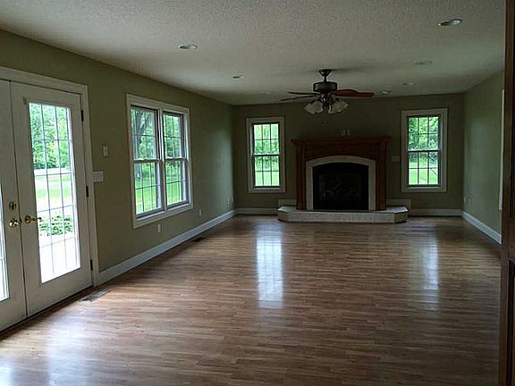 Country location ranch home in move in condition! Formal living room open to the dining room. Gally kitchen with quality cabinets and ceramic tile flooring, Large great room with fireplace and patio doors, three bedrooms, 2 full baths, 2 1/2 car detached garage, large private back yard, patio. HUD Case #413-517057. HUD Owned Property Sold "AS IS".