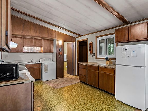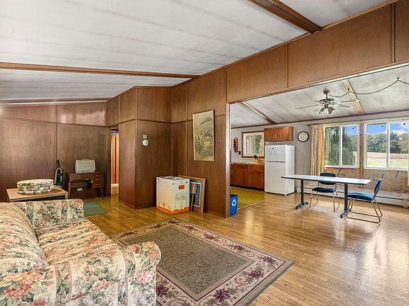 Opportunity Knocks! Bring your vision to this one-level home just outside of town. Featuring vaulted ceilings, 3 bedrooms, and 1 1/2 baths on the main floor, plus laundry hookups on both levels for convenience. The unfinished lower level offers the potential to nearly double your living space. A spacious 24x36 deep garage is perfect for storing vehicles, equipment, or toys. Steel siding adds durability. Relax on the covered front deck or enjoy backyard views framed by a mature weeping willow and open farmland all around. Ideal handyman fixer-upper or a great winter project for seasonal workers.