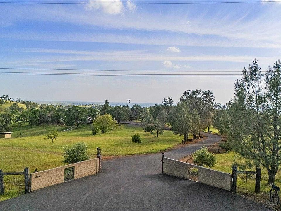 VIEWS VIEWS VIEWS! Enjoy the peace and quiet on this ranch style home set back on 10.8 acres of gentle rolling hills. Sentinel Oak trees, and granite outcroppings, are complimented by beautiful sunsets with southern exposure. As you drive down the private driveway, you'll pass a large steel barn adorned by grassy fields in the distance, then you'll approach the oversized 3 car garage, with ample parking on the level blacktop. The convenient ramp leads to the wrap around deck with VIEWS of the sweeping vistas beyond. Inside the home the you'll find an open layout, with hardwood floors, vaulted ceilings, pocket living room, a convenient central vacuum, and windows framing the beautiful views, complimented by farmhouse shutters for the summer sun. The primary suite is near the living room and dining for convenience, with an expansive sliding door leading to the deck. On the other end of the home are the two other bedrooms, legit with closets. Past the two bedrooms, down the hallway, takes you outside, opening up to a screened-in porch, and a shaded breezeway complete with a pergola. Home is part of the Lake Don Pedro HOA, and includes access to the Hacienda close by, and swimming pool. Close to Yosemite and two large recreational lakes, Lake Don Pedro and Lake McClure.