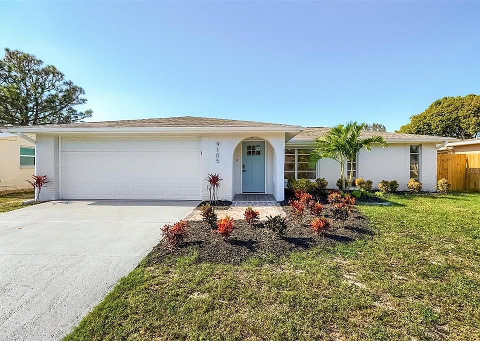 One or more photo(s) has been virtually staged. **Seller paid incentive $5k towards closing costs or buying down the rate** Welcome to this completely renovated 2 bed, 2 bath home in Port Richey with a private swimming pool. Head inside to the combined living room and kitchen. The kitchen features stainless steel appliances, an eat-in bar for additional seating, statement light fixtures, and quartz counters. The dining room is separate and has glass sliding doors that lead to the covered patio and pool, making dining al fresco a breeze. The primary bedroom has a private bathroom with dual vanity sinks and a beautifully tiled glass shower. Head outside to the large covered patio and pool with ample room for lounge chairs and an outdoor dining set. This home also features an attached 2-car garage, laundry room, and fenced-in backyard. Brokerage does not advertise on Craigslist and will never ask you to wire money or request funds through a payment app on your mobile device.