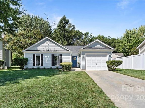 LOCATION, LOCATION, LOCATION Welcome to your delightful move-in-ready ranch home close to it all ***Only 15 minutes from Uptown Charlotte and 15 minutes from the Lake*** 3 bedroom, 2 bath home features vaulted ceiling in living room giving the space an open feel. Separate dining area overlooking patio and backyard. Gas log fireplace for chilly winter nights. Single car attached garage for extra parking or storage. Level wooded cul-de-sac lot with lovely tree lined backyard offers a peaceful and relaxing outdoor vibe. Both bathrooms recently remodeled and updated. Fresh paint throughout! New light fixtures! New flooring! Roof replaced with 35-year architectural shingles approx. 2019. HVAC replaced approx. 2019. Natural cork flooring in laundry room. Excellent Charlotte Location! Walking distance to the new Long Creek Greenway currently under construction. Close to shopping and dining. Convenient to 485 and 77. Don't miss this move-in ready home and Say Yes to the Address!!!