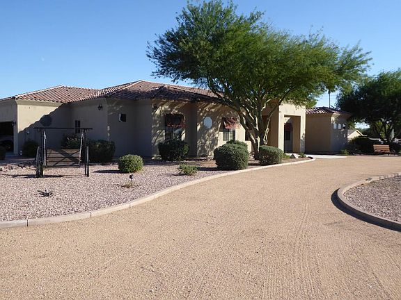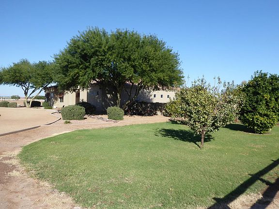 Immaculate manicured 2.3 irrigated horse property. Turn key and move in ready. Please enjoy the Photo Tour to appreciate this offering. Attention to detail will be evident. A few of the home's amenities include: Grand entry, travertine floors, upgraded hickory cabinetry, 8' alder doors, coffered ceilings thruout, surround sound inside and back patio. 2 sep office rms (4th BR is currently an office). 4 CAR GARAGE (w/ gleaming epoxy floor), garage cabinets. Backyard has privacy block fencing, dog run, fully landscaped, views to horse area. Horses will appreciate the open air barn and the lush green grazing pasture. Plenty of turn around and parking too. In addition, the entire exterior of the home received a fresh painting in 2016. PRIVATE WELL and BID irrigation!