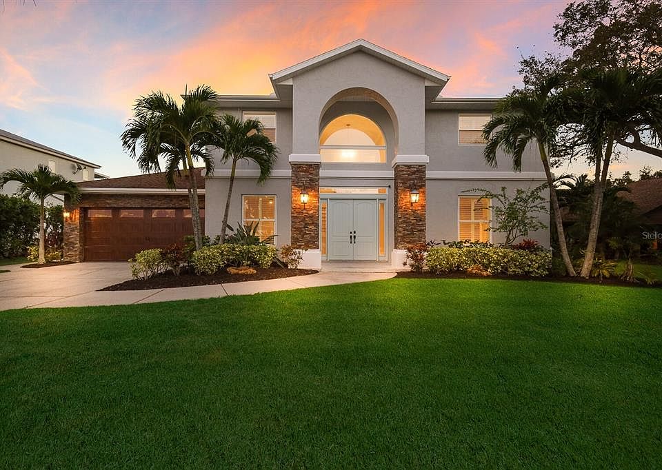 **Some photos are virtually staged. Talk about a truly STUNNING property in the premier area of NW Bradenton only STEPS TO THE ROBINSON PRESERVE! This completely updated home sits on over half an acre with gorgeous lake views throughout the home and backyard areas. One of those special "WOW" homes that rarely becomes available. Owner has meticulously maintained and everything has been updated throughout the home. This property will check all the boxes!!! LARGE PREMIUM HOMESITE***HEATED SALTWATER POOL & SPA***GORGEOUS INTERIOR***3,900+ SQFT OF LIVING SPACE***VERY PRIVATE WITH DIRECT LAKE FRONTAGE***IDEAL LOCATION! There really isn't anything you won't love about this home featuring 5 bedrooms, 3 bathrooms and an open floor plan with emphasis on natural light and southern exposure looking down the lake. As soon as you walk in through the double front doors you will appreciate the foyer entryway, beautiful wrap-around staircase, views directly out the back sliders, and the high soaring ceilings with crown moulding throughout. In the heart of the home you will find the gourmet eat-in kitchen which has plenty of cabinet storage, granite countertops, a farmhouse sink, subway tile backsplash, stylish matte fixtures, upgraded wall oven, stunning Stainless Jenn-Air Steel Appliances, an oversized center island providing multiple spots for seating and entertaining! Across from the kitchen, you will find an expansive living room with extra large windows and an incredible view of the pool and patio area outdoors. There is a designated dining room for gathering with the family and a bonus family room and/or office with cozy fireplace and seating area adjacent to the kitchen! With 5 bedrooms you will have ample space for a big family and extra rooms for sleepover guests! The Primary Suite is an absolute oasis, there is an attached en-suite bathroom equipped with a grande walk-in closet, his and her vanities, a massive stand-alone shower (with rainfall shower head!) and a freestanding bathtub where you can relax and unwind after long days. Outside you will find the covered back patio complete with an outdoor fireplace, a full outdoor kitchen and grilling area, multiple spots for dining, a bonfire area, artificial turf for zero maintenance and a beautiful heated saltwater pool and spa. All of this overlooking the lake which is full of life including many native birds and even a family of otters! You will never want to leave this peaceful serene backyard area and is the perfect spot to wind down the evening catching all of the panoramic sunsets that light up the preserve. Located only minutes to the white sandy beaches of Anna Maria Island and a short distance to downtown St. Pete and the cultural & culinary arts of Sarasota. Walk or ride bikes to the Robinson Preserve, a 682-acre nature preserve offering trails, kayak launches, scenic lookouts and picnic areas. This home is also minutes to the Botanical Gardens and Historical Desoto National Park. Excellent Schools nearby.This home has endless sunsets to experience on this beautifully designed Lakefront Home! This Home is priced to sell! Serence Lakefront Living!