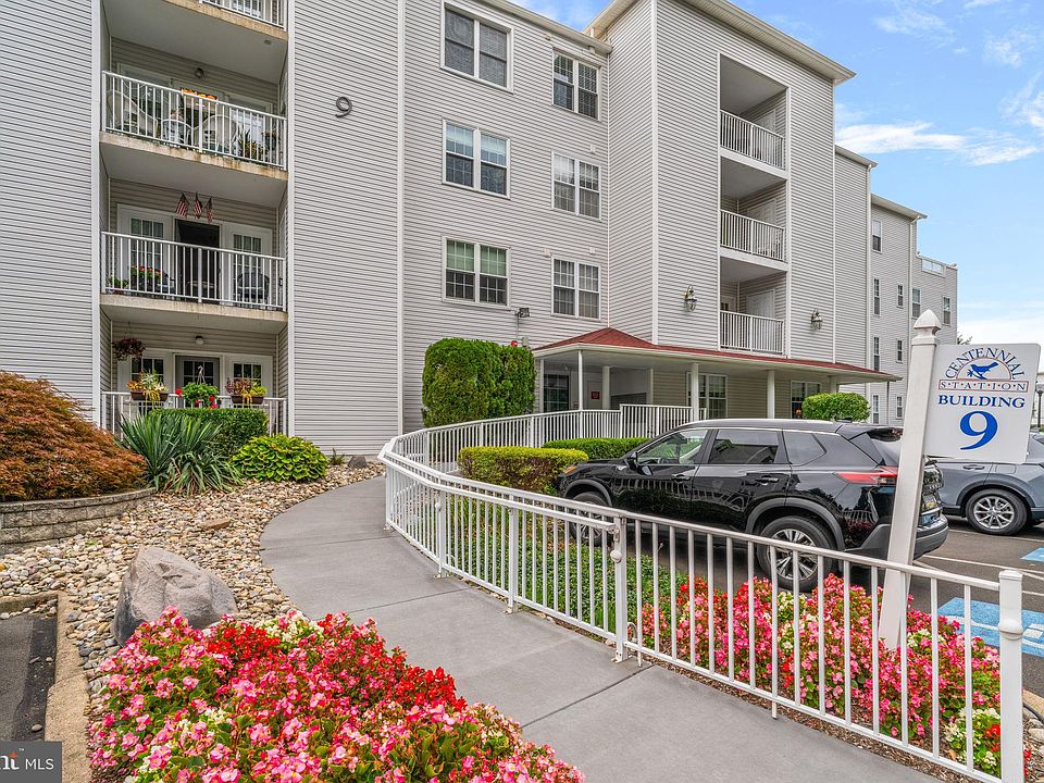 Welcome to Building 9 in Centennial Station, an active 55+ community. This unique bi-level 1,900 square foot 1 bedroom 2 full bathroom condo with LOW TAXES boasts 2 entrances, one on the first floor and one on the atrium level. The first floor has a large bedroom with a walk-in closet and a full bathroom with a walk-in shower and the atrium level bonus room, currently used as a bedroom, also has the 2nd full bathroom with a walk-in shower and a walk-in closet. The newly renovated designer kitchen boasts granite countertops, numerous cabinets including a pantry, stainless steel appliances and new flooring. Lots of storage with oversized drawers and a trash can cabinet as well as a sheet pan storage cabinet. Over the sink is a pass-through opening into the first floor living room that offers that connection between rooms. The neutral carpeted living room is a welcoming view from the first-floor entrance and the large window was upgraded with granite windowsills. Off the first floor living room is the large, carpeted bedroom that has granite windowsills as well. The lower level has two entrances. One from the atrium common area you can access with the elevator or building stairway that has a foyer that leads into the lower-level living space and the other from the inside staircase. Currently set up as a craft and/or dining area that also, like the first floor, leads into the large, carpeted bonus room. Also, off the lower-level living space is the laundry, mechanicals and storage. One of the advantages of Building 9 is that it is directly connected to the community building. Residents can access the indoor pool, the library, the gym, the card room, the game room, the ballroom, the office and the dentist, salon and restaurant WITHOUT GOING OUTSIDE! Wonderful well-maintained grounds are just beyond the pool area that has a beautiful fountain, trees and lots of walking paths as well as a shuffleboard court and two gazebos with BBQ’s. Centennial Station is a no dog community (except for service dogs) however cats are welcome. Come join this community and take advantage of the numerous activities offered at Centennial Station there is something for everyone!