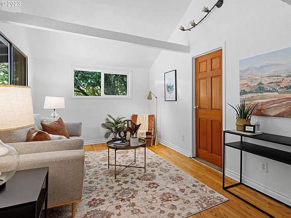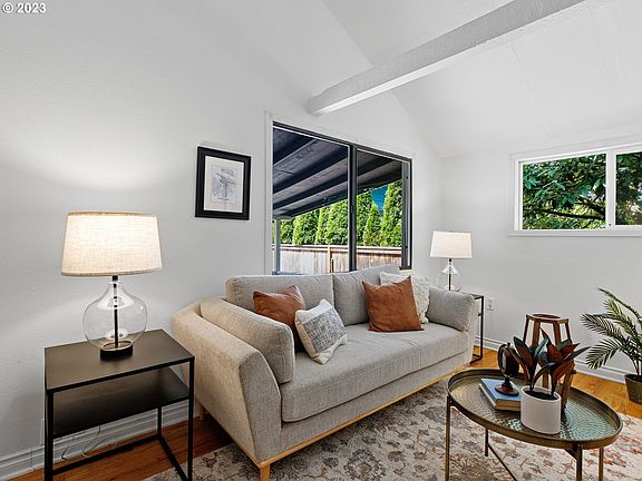 Fantastic Multnomah Village home- Lives larger than expected. One level offers vaulted ceilings & exposed beams, two bedroom with formal dining area all perfectly situated on 7500+ square foot lot with privacy fence and incredible outdoor space. Covered front porch, back deck, storage shed, fire pit. Ease of access to I5, public transportation, downtown, Tigard. Open Saturday and Sunday 12-2! [Home Energy Score = 1. HES Report at https://rpt.greenbuildingregistry.com/hes/OR10220631]