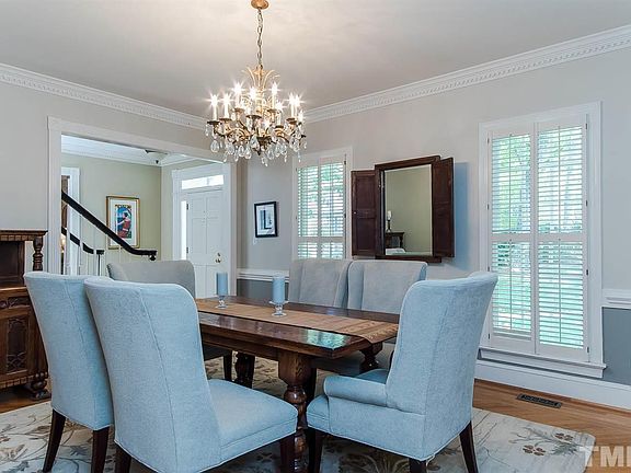 Desirable North Raleigh location on culdesac, less than a mile to 540, Whole Foods, shopping and restaurants. Remodeler's Council STAR award for kitchen design - MUST SEE!, custom bookcases in the library, Master with trey ceiling includes nursery area with cathedral ceiling. Bonus room includes wet bar with wine fridge and dishwasher. 3rd floor guest or teen suite. Enjoy the screened porch and views of large landscaped and fully fenced yard.