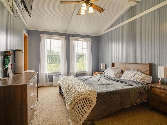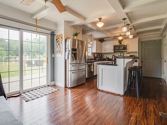 Imagine waking up, drinking coffee and watching the sunrise on 1 of your 3 expansive decks overlooking your pond on almost 6 acres..... this hilltop property has it all! Elevated country living is offered in this 2004 home featuring 3 bedroom, 3 bathrooms, separate workshop and partially finished walk out basement . You will fall in love with the coved inlay ceiling in the kitchen and upgraded appliances that stay with the home. Cozy up to the stone wood-burning fireplace and you will never want to leave this place! The spacious primary bedroom retreat boasts an attached full bathroom with full size laundry. This place has it all!