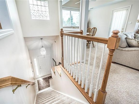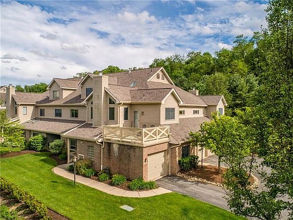 This property establishes a new benchmark for an exceptional low-maintenance lifestyle! Surrounded by tranquil woods but with easy access to I-79, this home could be your future oasis. Greet your guests in the bright foyer, steps away from the open-concept main level. Their attention will be grabbed immediately by the gas fireplace framed by extra tall windows. Vaulted ceilings & plush carpets lead guests from the open family room to the dining room. Your spacious, eat-in, horseshoe kitchen will be the mecca for entertaining friends & family for years to come! On this level, you'll also find the luxurious owner's bedroom w/ a private en-suite bathroom & walk-in closet, a cozy den/home office, half bath, and convenient laundry room. Upstairs, the loft is illuminated by recessed lighting & skylight. Head into the second bedroom and you'll find an additional full suite w/ a private bathroom! Outside, your private deck overlooks beautifully groomed grounds (thanks to your HOA). Just relax!