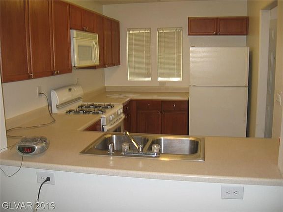 Clean & well maintained 2 story, move in condition. 3 Bdrm, 2 1/2 bath, 1 car garage. Laminate wood in living room, tile in kitchen. Living room is open to the kitchen. Master has a balcony, there is a front porch. Plenty of counter & cabinet space. Microwave, raised panel doors. Walking distance to elementary school. Neighborhood has pool & playground nearby, but no backyard. Convenient Centennial Hills location. All appliances included.