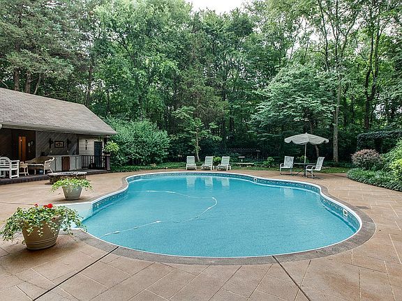 Treed, cul-de-sac lot with resort-like backyard. Screened-in porch, huge deck, heated play pool, 20x17 pool house w/ full bath. Study could be Master down. Master up has fireplace, with updated master bath, double closets.