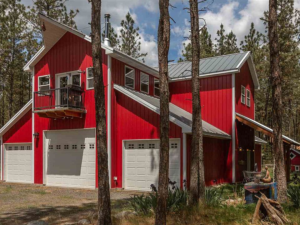 Incredible custom home & the GARAGE MAHAL on 2.5 treed & private acres! 2 minute walk to Centennial Trail & Spokane River access. Several custom finishes including concrete countertops & reclaimed wood floors in great kitchen. Cathedral ceilings & abundant natural light. Heat pump, central A/C & new wood stove. Awesome well too! Fenced back yard & chicken coop. Metal roof & siding. Covered patio & 2 balconies. DREAM 8-10 car garage also includes shop area, exercise area & bed/bath for possible in-law setup.