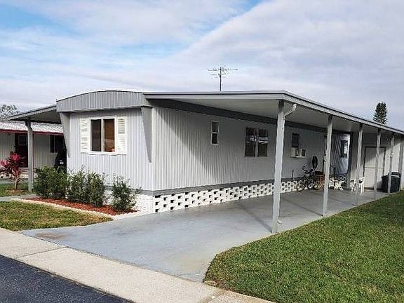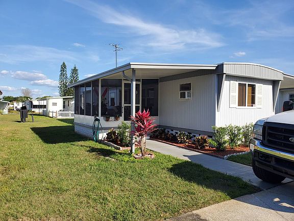 Well Cared For 2 Bedroom, 1.5 Bath, 672 square foot, 1979 Built Home is located in Shalimar Village. This is a Age Qualified Community Park. Monthly fee is $604 per month and includes Water, Trash, Sewer, Lawn and All Park Amenities. Home has been well cared for with Newer Sub Floors, Tile Bathroom Shower/Flooring, Tile back splash in Kitchen, Laminate Wood Flooring Throughout, Ice Cold A/C + Window Units if you like to just be cool in one area. Warm heat for the short Winter months. Kitchen is cozy and comes with a less than 2 yr old Stainless steel refrigerator, Gas Range and Plenty of Cabinet Storage. Eat in Kitchen comfortably seats four with room for a storage case. Nice Large Windows let in natural lighting! Living Space fits a full size couch & recliner + TV stand. Inside Laundry also offers upper storage cabinetry. Clothes Line is an additional option located in the back yard. Master Bedroom has a 1/2 Bath & Closet. Guest Room & Hall Bath are on the opposite end of the home so visiting guests have their own space! Hall Bath has a tub/shower combo with vanity/storage. Notice the attention to detail as the Kitchen and Bathroom match for a nice design flow. Paint colors are Neutral. Ceiling fans throughout! Spacious Screened in Porch with its own entry is Perfect for Holiday and Family Gatherings or just a space to sit back and relax! Two Car Covered Carport with Storage Shed. Driveway Space, Beautifully Landscaped & Clean. About the Park: Shalimar Village Manufactured Housing Community located in Port Richey, is an active age qualified rural village that is filled with friendly, sociable neighbors, on-site management, quality maintained homes, quiet streets, abundant indoor and outdoor activities, activity-filled clubhouse, outdoor pool and picnic area, along with beautiful landscaping throughout this community. Things to do: Fishing and bird watching, Swimming and kayaking, Boating and boat tours, Parks and recreation, Hiking and bicycling, Restaurants and shopping, Gulf View Square Mall Theater, concerts and shows, Art galleries and museums, Thrift stores and flea markets, Spas and wellness centers & Local bus transportation. Werner Boyce Salt Springs State Park, home to wondrously clear, refreshing springs over 300 feet deep-a birdwatcher's haven where you can paddle the serene inlets and bayous that meander through this amazing salt marsh (2 miles). Shalimar Village is along the Gulf of Mexico, approximately 40 miles northwest of Tampa and less than 3 miles east of the Atlantic Coast. It is great to know that some of the area's main healthcare facilities are conveniently located close to Shalimar Village, including Medical Center of Trinity (8 miles), Morton Plant North Bay Hospital (3 miles) and Heather Hill Healthcare Center (3 miles).