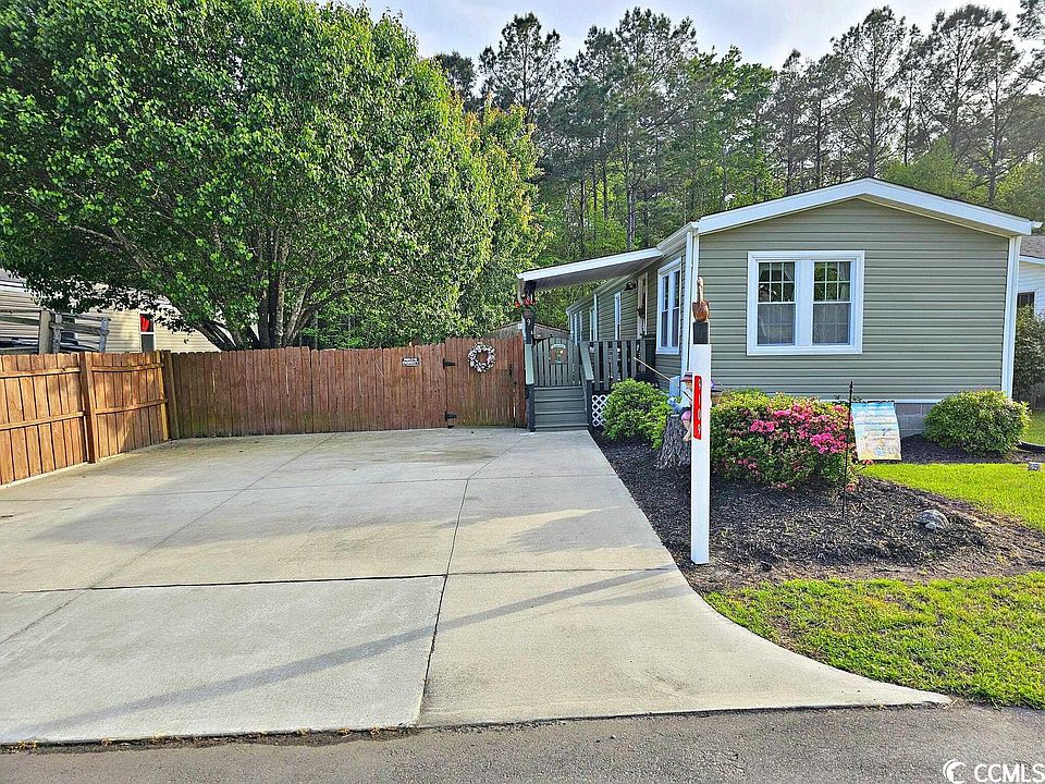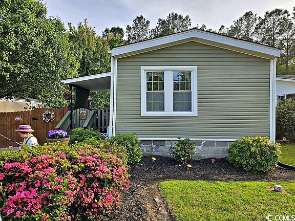 This is a must see ready to move into 2br/2ba manufactured home that comes with the land. Over the past few years the owner had gutters installed, oversized driveway poured, new vinyl windows, vinyl siding, shingles replaced, screened in porch, and an HVAC system with a Bipolar Sonic Filtration system. This community is just a few miles to the Surfside Beach pier. The master bathroom has two single vanities, and large deep corner tub, and a walk-in shower. The kitchen, living room, and both bedrooms are quite spacious. The Title has been retired on this mobile home.