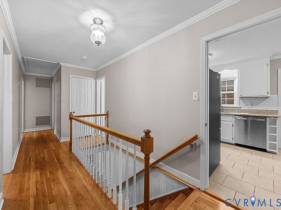 Wonderful home in the coveted James River High School district, nestled in the desirable Brighton Green neighborhood. This brick and vinyl beauty offers three spacious bedrooms, 2.5 baths, and generous living spaces including formal living and dining rooms with crown and chair rail moulding. The updated eat-in kitchen features freshly painted white cabinets, brand new stainless steel kitchen appliances (French door refrigerator, range and dishwasher), granite countertops, wall pantry, subway tile backsplash and tile flooring. Rear a rear sunroom off kitchen provides a relaxing retreat. Brand new neutral carpet, fresh paint, and beautifully refinished hardwood floors (9/2025) enhance the home’s timeless charm. The full, partially finished basement boasts a spacious family room with a brick fireplace and built-ins, a side pedestrian door, half bath, and an additional flex room ideal for a gym, playroom, office, or craft space. A laundry room offers direct access to the oversized 1+ car side-entry garage and workshop that spans the entire width of the home. Abundant storage, a paved double-width driveway, and a partially fenced rear yard add everyday convenience. Brighton Green offers a voluntary community association with optional clubhouse and pool membership and is ideally located near Midlothian Turnpike with quick access to hospitals, health facilities, shopping and dining, and the Powhite Parkway for easy trips to downtown RVA and beyond.