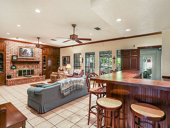 This custom-built home offers an impeccable finish, 9' ceilings, a 2-story foyer, a formal dining room, a family room w/built-in cabinetry & bar. The large kitchen provides ample counter/cabinet space & each bedroom includes a full bath & walk-in closet. This well-maintained home is located on a quiet, dead-end street. Hurricane shutters on the new windows and a whole-house generator. A 2-car garage w/work area is connected to the house by a covered patio so you never have to unload groceries in the rain!