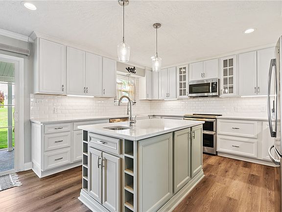 Welcome to this updated, beautifully-maintained property. Luxury vinyl plank floors greet you upon entry & flow thru entire first floor. The heart of the home is an enormous, show-stopping chef's kitchen outfitted w/soft-close cabinetry, quartz counters, SS appliances w/Keurig IN refrigerator, double-oven, farmhouse sink & immense island w/a prep sink & beverage center. Wow! Comfortable FR w/wood fireplace, formal DR & LR (currently, vast playroom - could easily be home office/den) & updated powder room complete this stunning first level. Sliding door from kitchen leads to a sizable covered patio w/ceiling fan overlooking a level backyard & built-in fire pit. Upstairs, the owner's suite provides a soothing retreat w/full bath & huge walk-in closet. Three other generous bedrooms & full bath, plus conveniently-located laundry space, are found here. The whole family will love relaxing or entertaining guests in the finished lower level with updated half bath. Oversized garage.