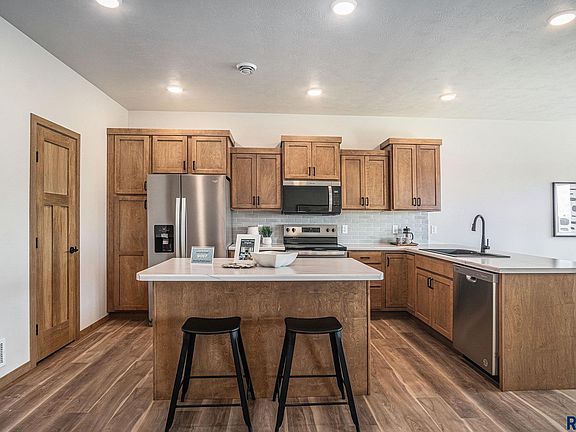 This one level twin home has it all located on the west side of Sioux Falls. The kitchen offers ample space with a breakfast bar, island and pantry. The master suite offers double sink vanity, walk in closet, and walk in Shower. There is a covered patio in the front and a larger covered patio on the back of this home. Quality construction from Empire Homes includes 9ft ceilings, tile backsplash, stained custom birch cabinets, solid core poplar doors, luxury vinyl tile floors, Whirlpool kitchen appliance package, landscaping rock, sod and sprinklers included.