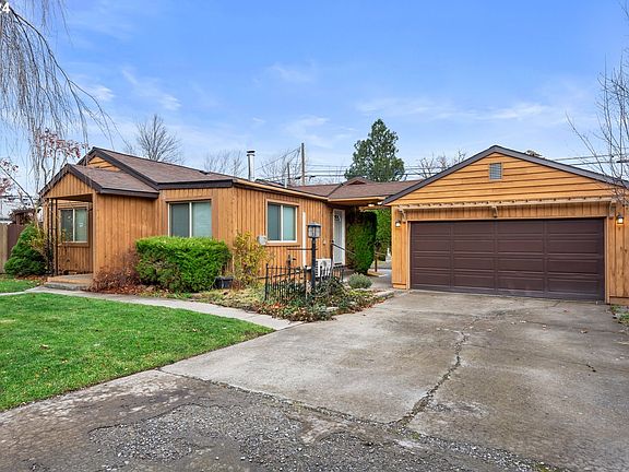 Quiet tree lined street in neighborhood close to EOU and downtownLa Grande. The two-bathroom 2-bedroom home with a good-sized living room has an updated kitchen and eat nook. The home is accented with knotty pine giving a very warm feeling along with the free-standing gas fireplace. The breezeway to the garage is a major plus. Plenty of built in shelves and work area. There is alley access for more parking along with a back yard, mature plantings and landscaped with raised garden beds. The garden shed offers more storage. All in all, this is a darling place to call home.
