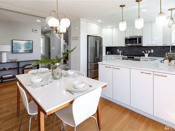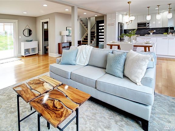 Masterfully remodeled South Hill home w/stunning Bay Views! The main floor's open layout features a designer kitchen, spacious living room & dining area opening to a huge view-facing deck, or to the fenced back yard. 3 BR's on the 2nd floor w/a bright tiled bath + full-size laundry. The Master Suite alone, w/a spa-like bath & enormous walk-in, commands the top floor. And the always-comfy lower level boasts another BR, full bath, laundry & play/media room. Luxury & Location, have them both!