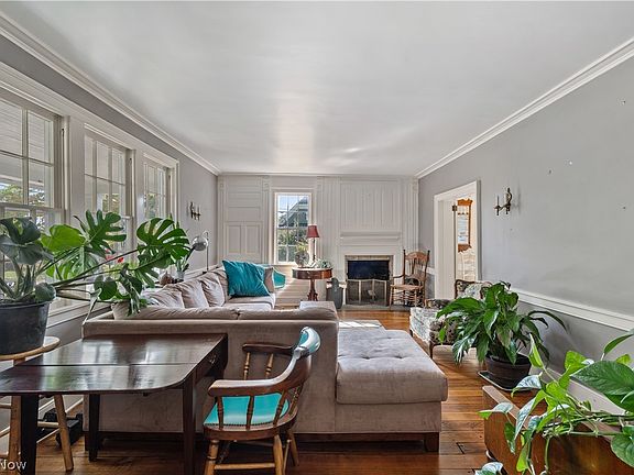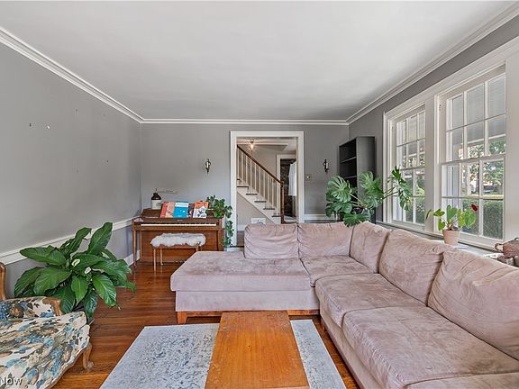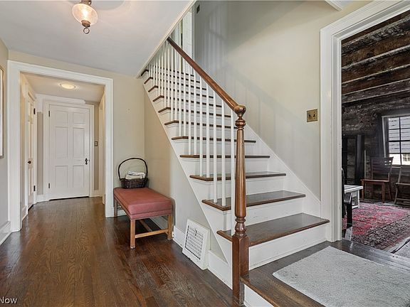 Talk about character! Check out this charming, historic colonial in Canton, close to Malone University with easy access to US-62 and I-77. Situated on a corner lot with well-kept landscaping, stone walkways, a 2-car garage, and a massive front porch, this home grabs your attention before you even get inside. Walk into the front foyer to find an eye-catching staircase and beautiful, wide-plank hardwood floors that lead into a large living room. The living room features a wood-burning fireplace, wainscoting, and lots of windows to let in natural light. You’ll notice quality finishes such as crown moulding and chair rail throughout the home. The formal dining room connects to a sitting room and a fully-applianced eat-in kitchen with built-ins and a striking brick floor. The first-floor laundry is conveniently located here, and a tiled-in half bath is right around the corner. The historic character of this house really comes to life in the log-cabin style family room. You’ve never seen a r