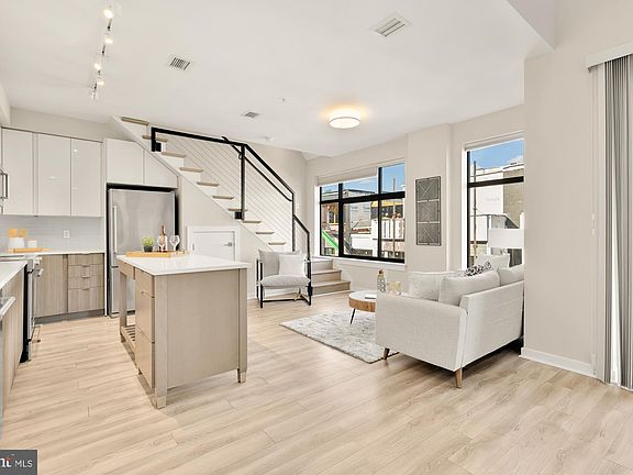 Welcome to Pullman Place, an exquisite building! This stunning 2-bedroom + den, 2-bathroom penthouse condo is designed for those who love modern, light-filled spaces. The open concept on the first floor highlights a sleek, modern kitchen with floor-to-ceiling windows, creating a vibrant entertaining area that flows seamlessly onto one of two private balconies. The guest bedroom and a full bathroom complete the first floor, providing convenience and privacy for guests. The second level features a versatile den, which opens to a private roof deck, perfect for unwinding or enjoying city views. The primary bedroom is a true retreat, with multiple skylights that flood the room with natural light, a spacious walk-in closet, and an en-suite bathroom. This penthouse also includes one assigned parking space, two deeded bike storage spots, and an additional storage unit. Plus, parking is flexible—rent it out if not needed! Pullman Place offers amenities including a gym and a shared rooftop with stunning views of Washington, D.C. Located just steps from NoMa and Union Stations, Union Market, Whole Foods, and the vibrant H Street corridor, this condo combines modern luxury with unbeatable convenience. All square footage is approximate. If buyer chooses KVS Title for closing, they will give the buyer a $500 credit at settlement.